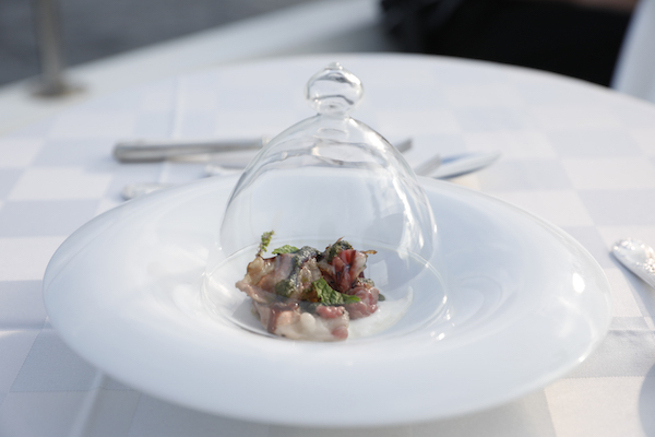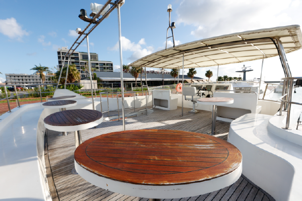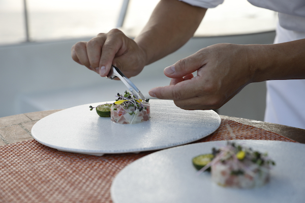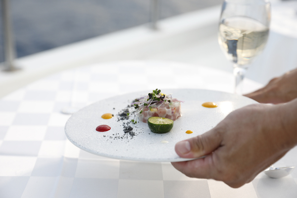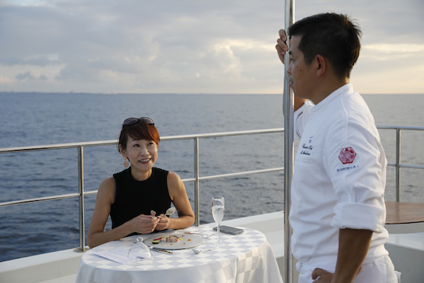ホテルの総料理長・琉球料理伝承人による、沖縄の旬の食材や伝統料理文化の技法を駆使した“貴方だけのお料理”を、船上へお届け。上質な食材や料理を、船上で手軽に楽しむファストファインをテーマに、ゲストに合わせたメニューやマリアージュをシェフ自らが考案。シェフとの会話をも楽しみながら、一客一亭のもてなし、食の芸術を堪能できます。